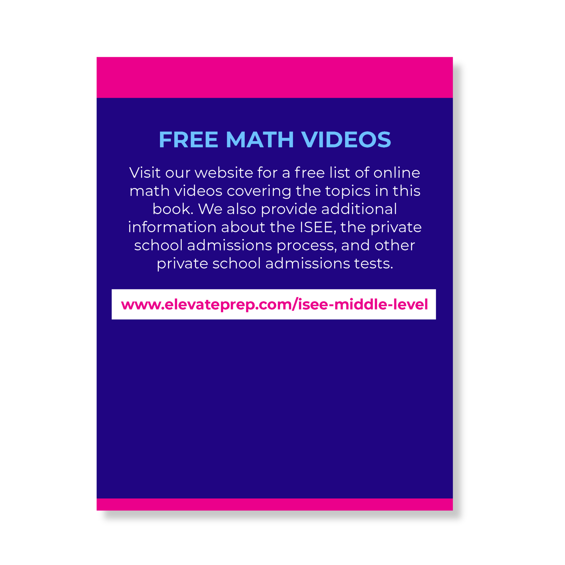 - We've compiled a list of free online video resources covering the math concepts covered in this book. You can find the video list at www.elevateprep.com/isee-middle-level