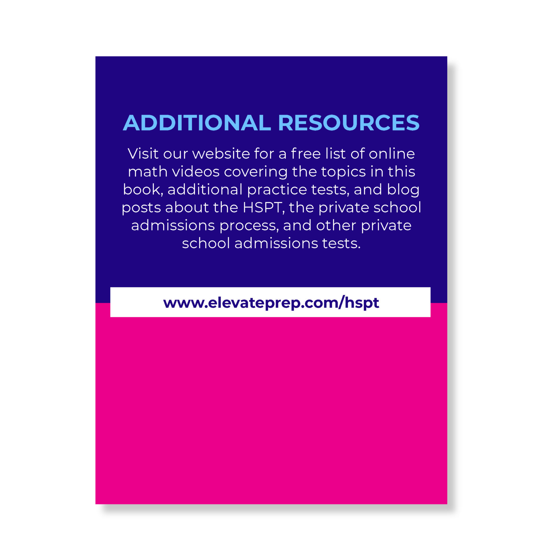 - A comprehensive list of free online video resources covering the math concepts in this book. You can find them at www.elevateprep.com/hspt