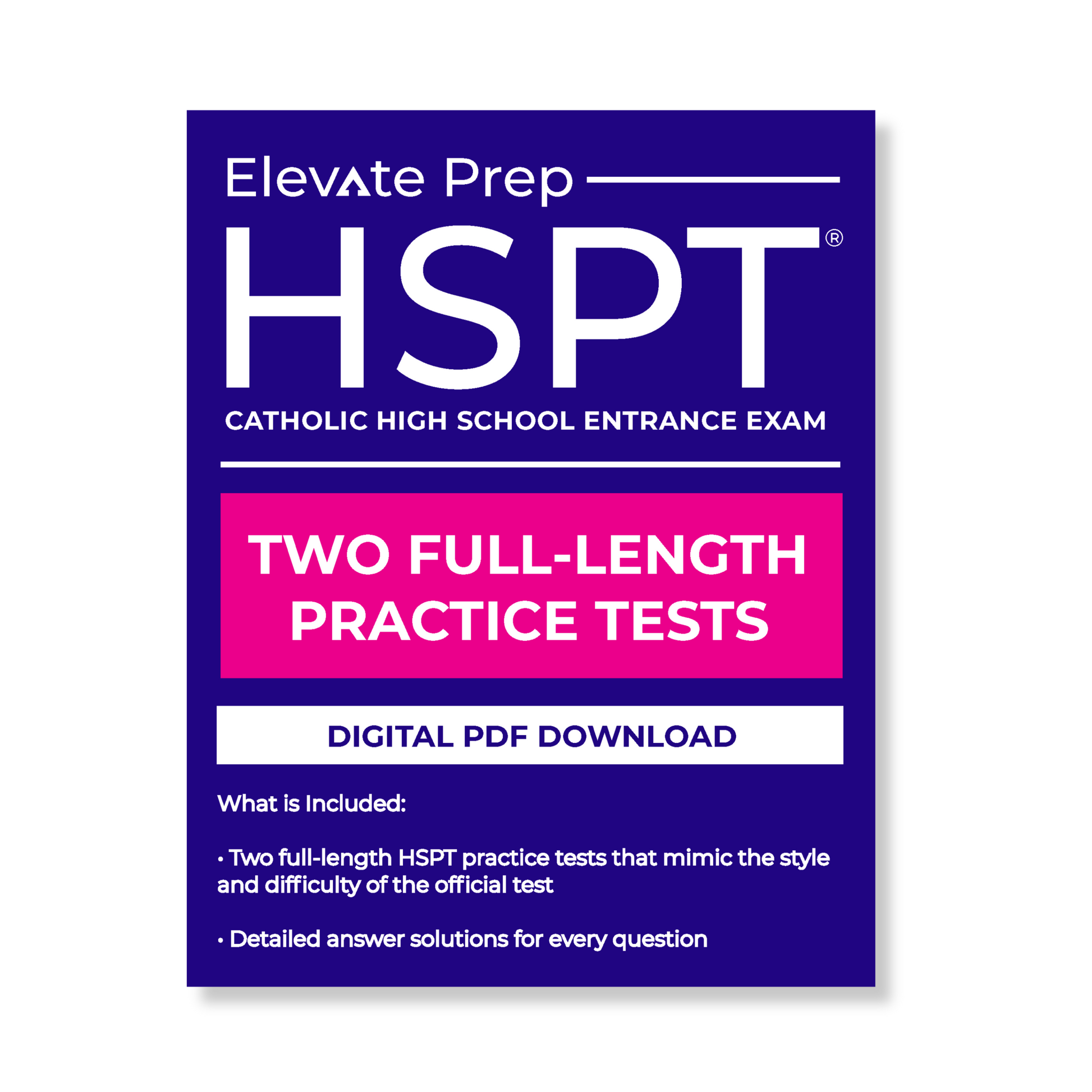 - 2 full-length HSPT practice tests that mimic the style and difficulty of the official HSPT