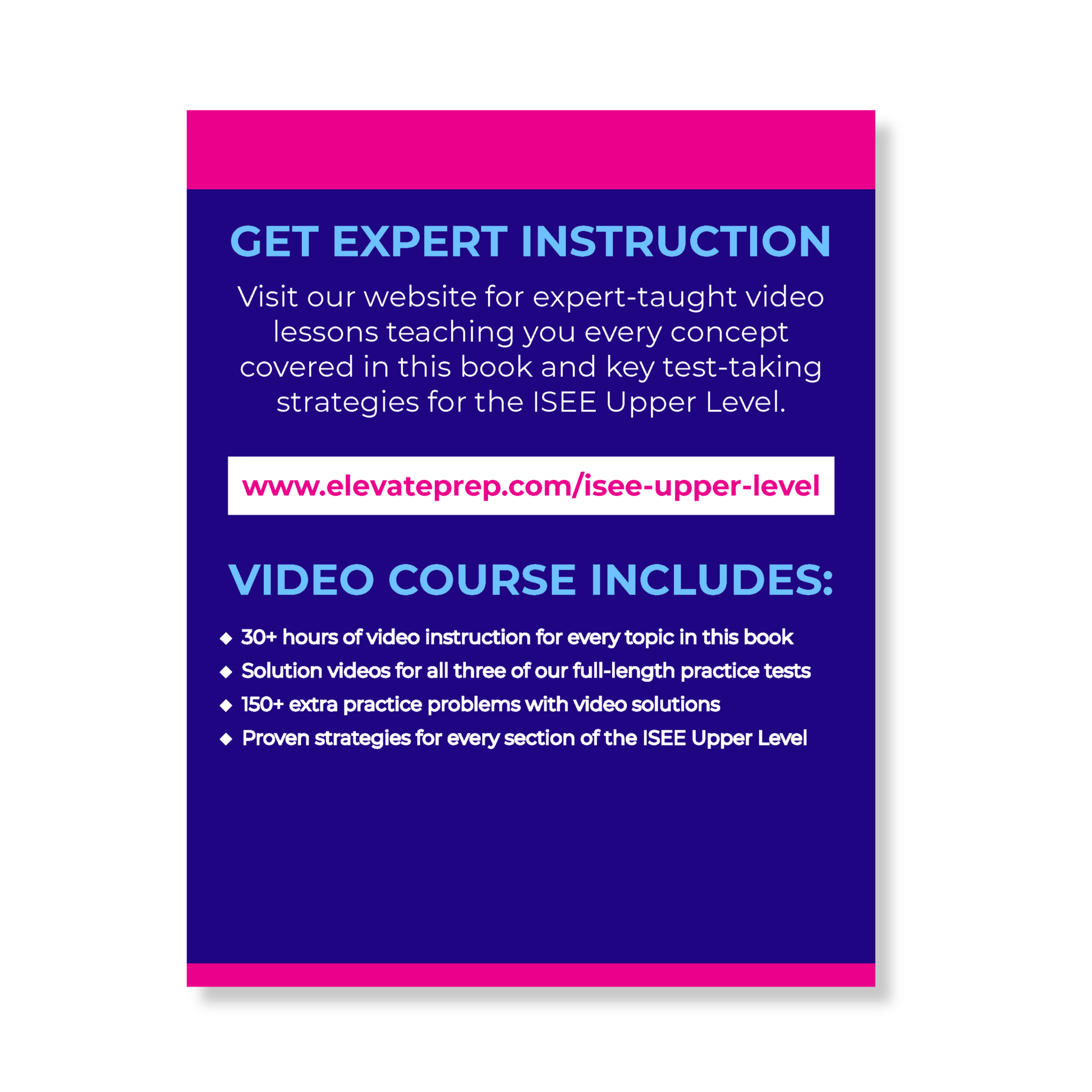 - 400+ pages of detailed answer solutions are available online for every question in this book. You can find them at www.elevateprep.com/isee-upper-level